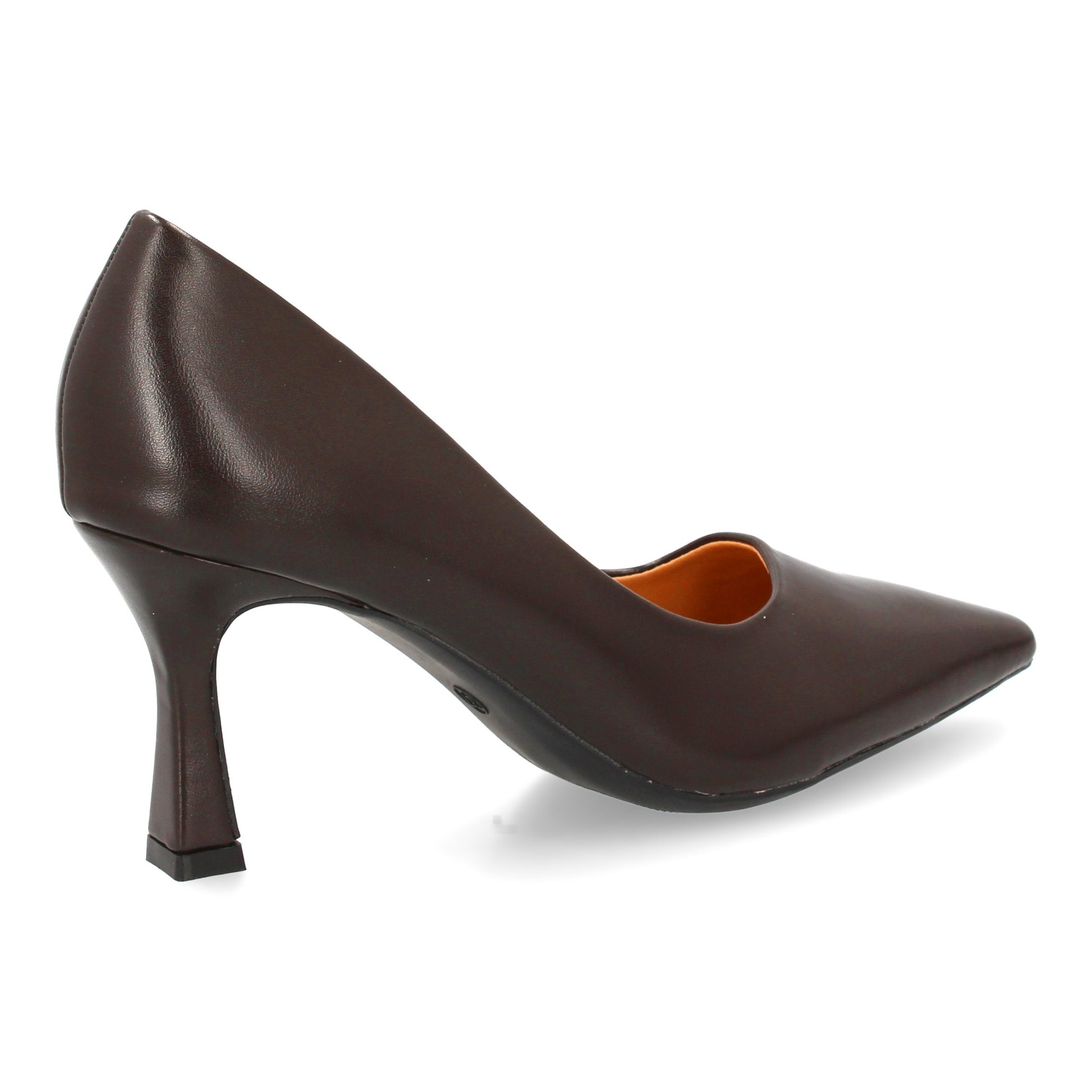 Zapato de salón clásico con punta fina y tacón comodo. Estampado liso sin cierre. Ideal para mujer en temporada de Otoño invierno.
