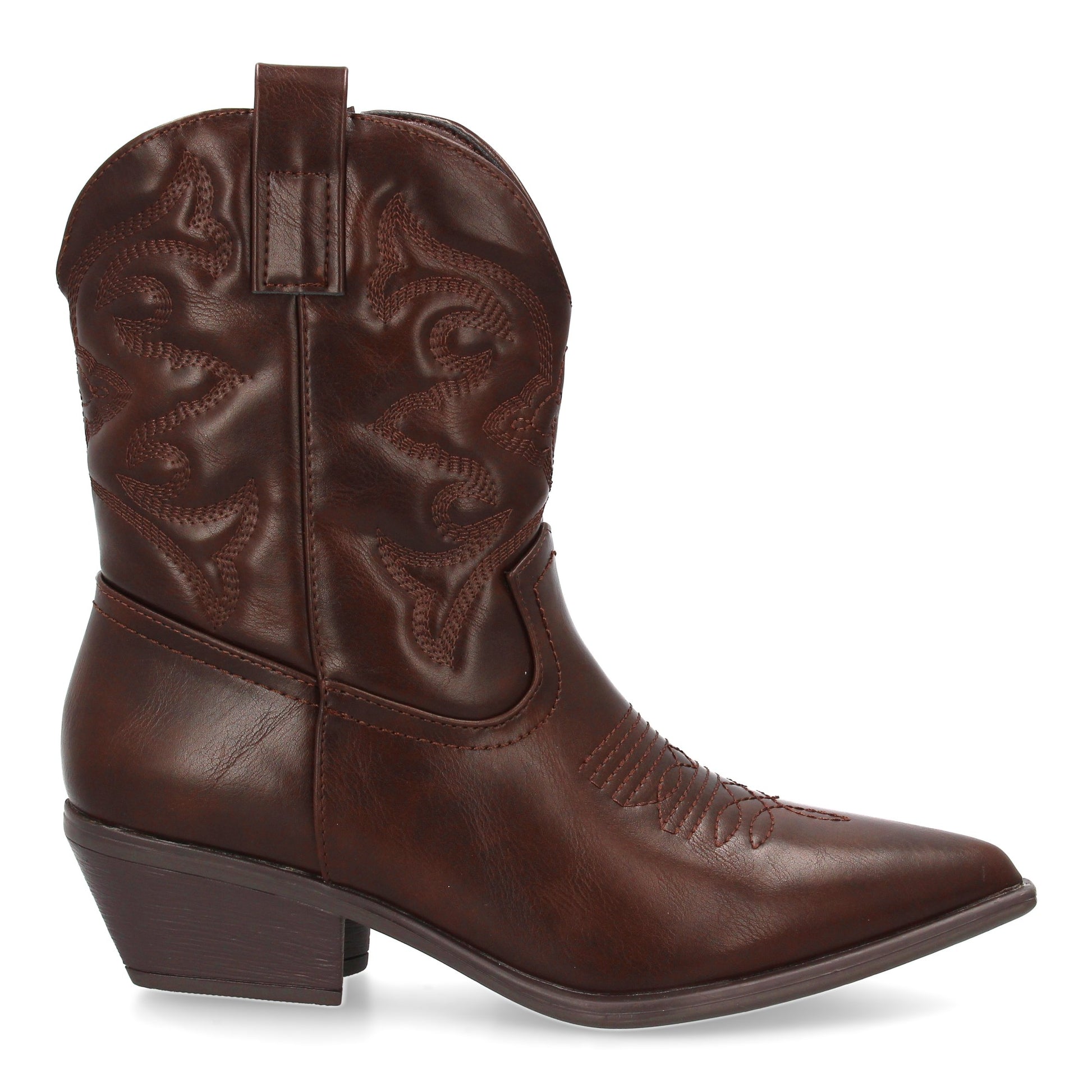 Botín estilo cowboy con bordados en la caña tacón ancho y punta fina. Estampado liso Diseño moderno con cierre de cremallera ideal para mujer en la temporada Otoño invierno.