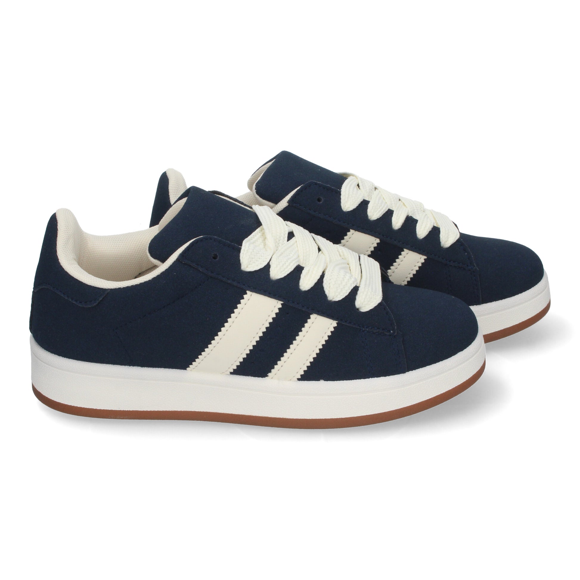 Zapatillas Deportivas Planas Estilo Casual para Mujer Cierre de Cordones y Detalle de Franjas Laterales.