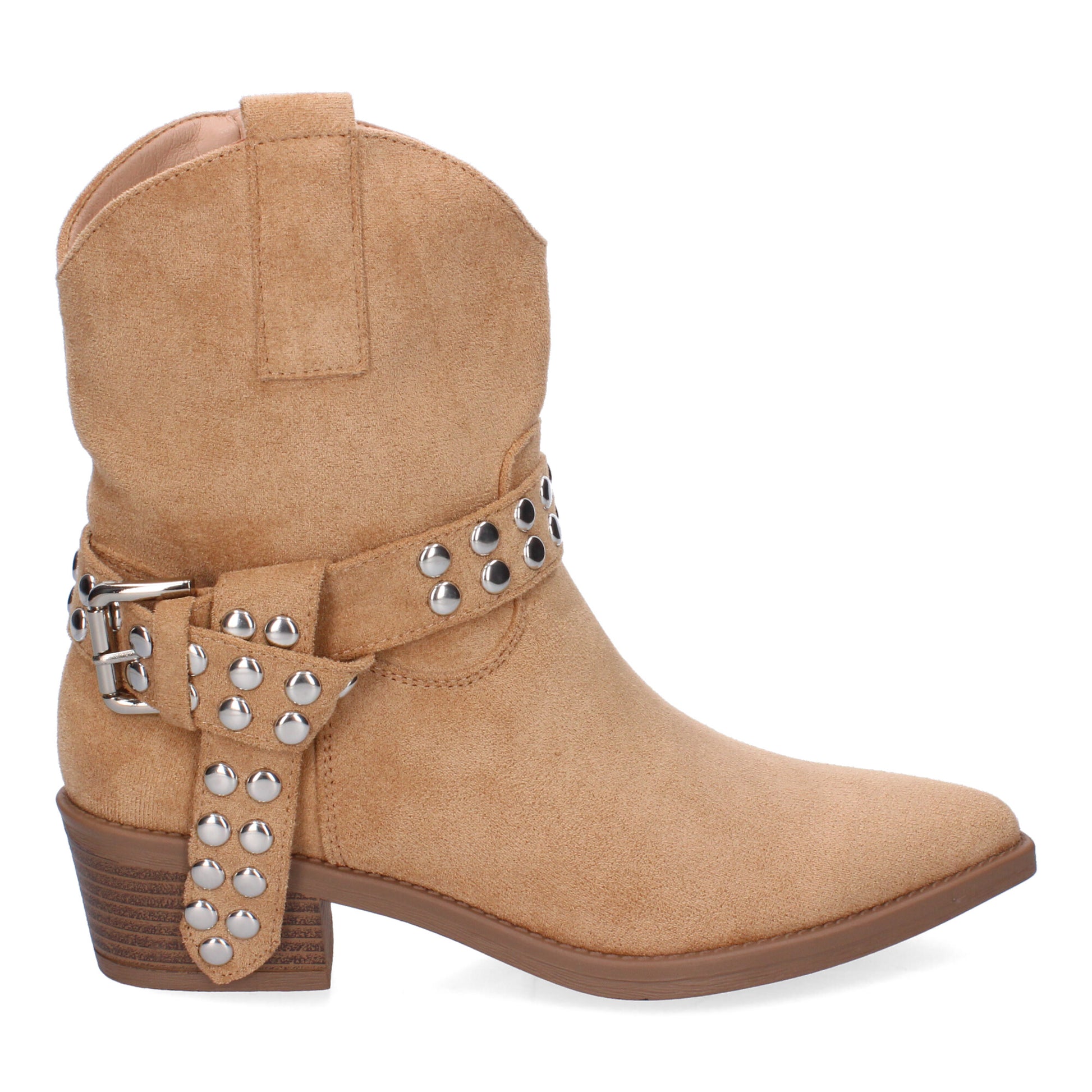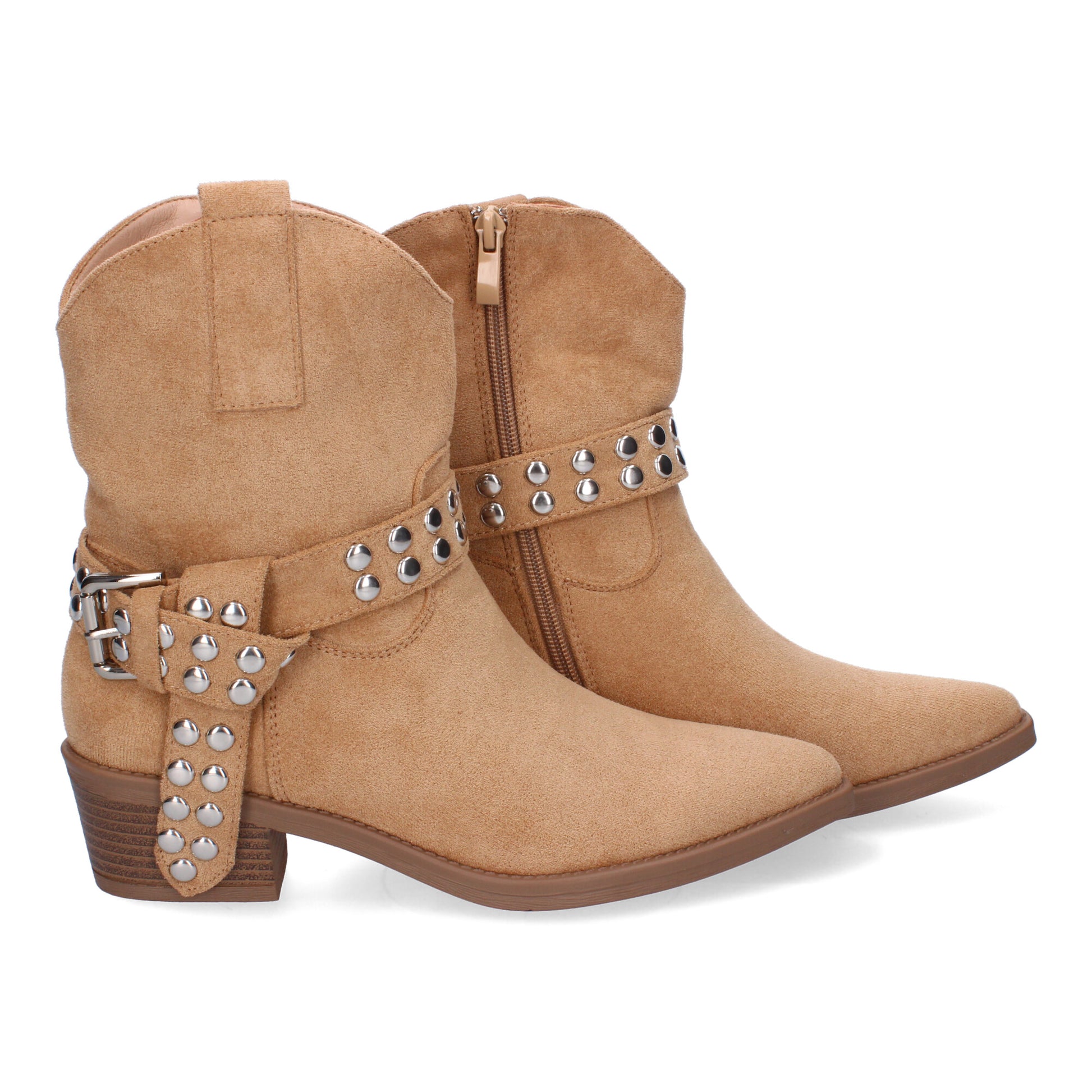 Botín de Tacón para Mujer Estilo Campero Comodas y Elegantes con Hebilla Decorativa y Tachuelas Diseño Moderno y Versátil.