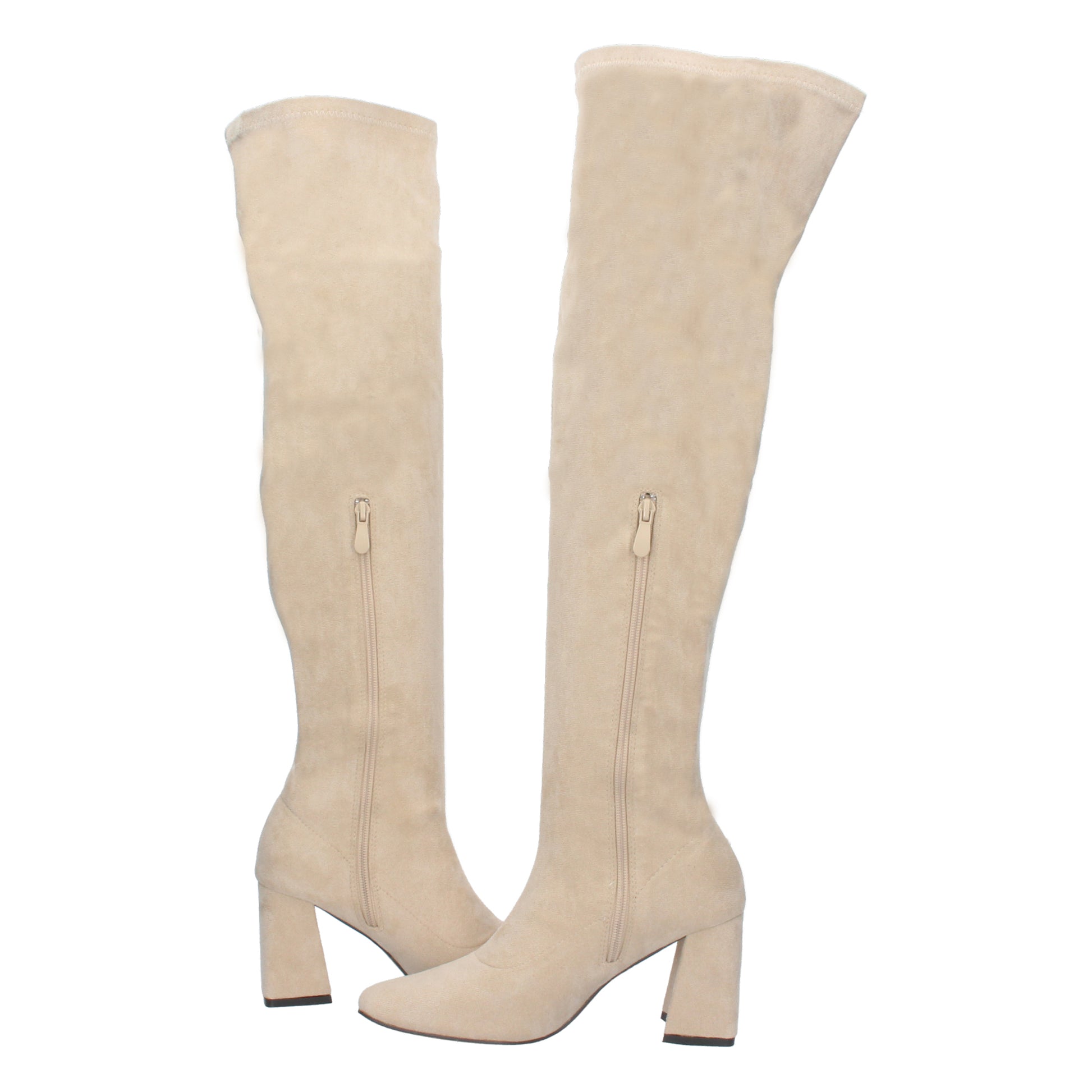 Bota Alta de Tacon para Mujer Comoda con Estampado Liso Ajustada a la Pierna y Cierre de Cremallera Otoño Invierno 2022