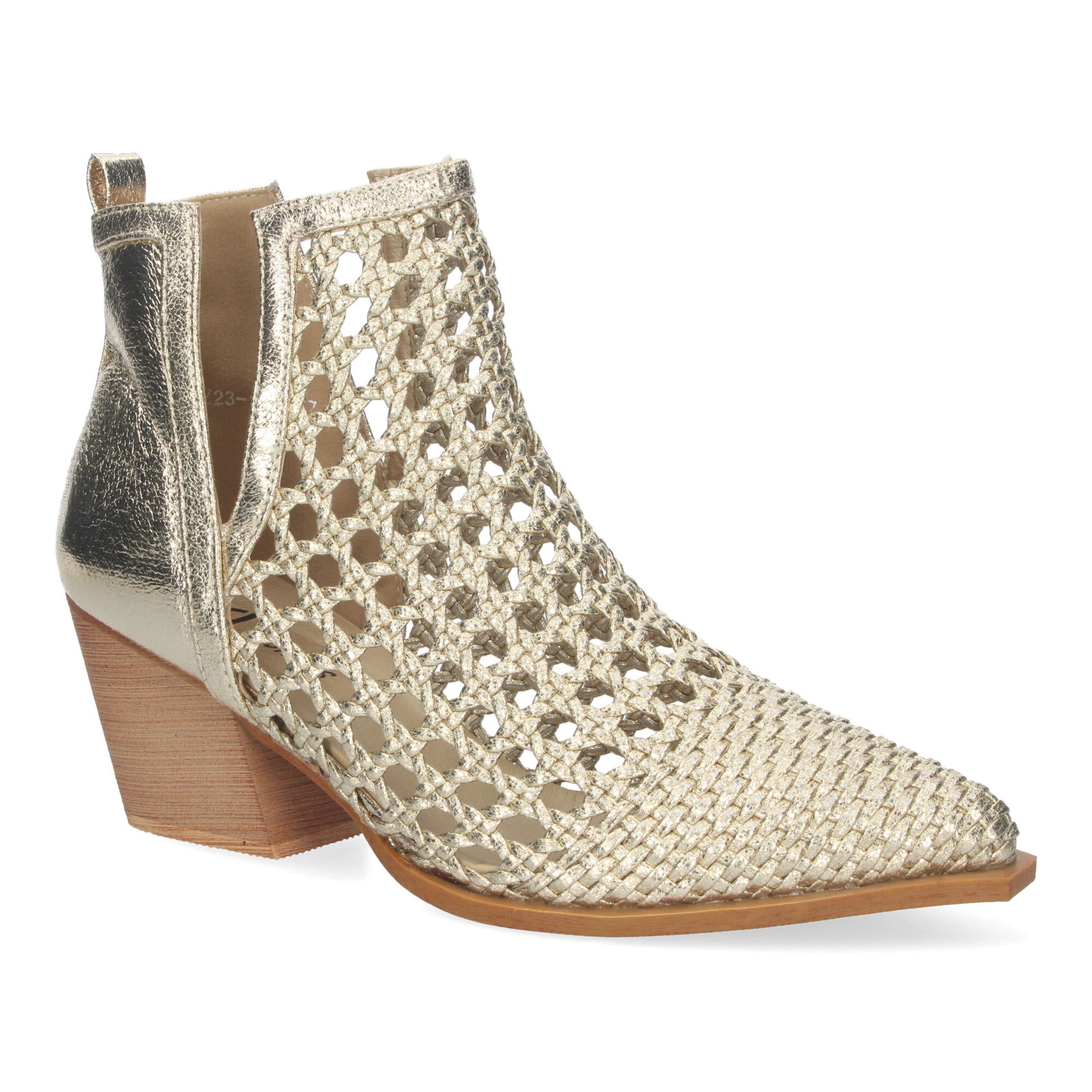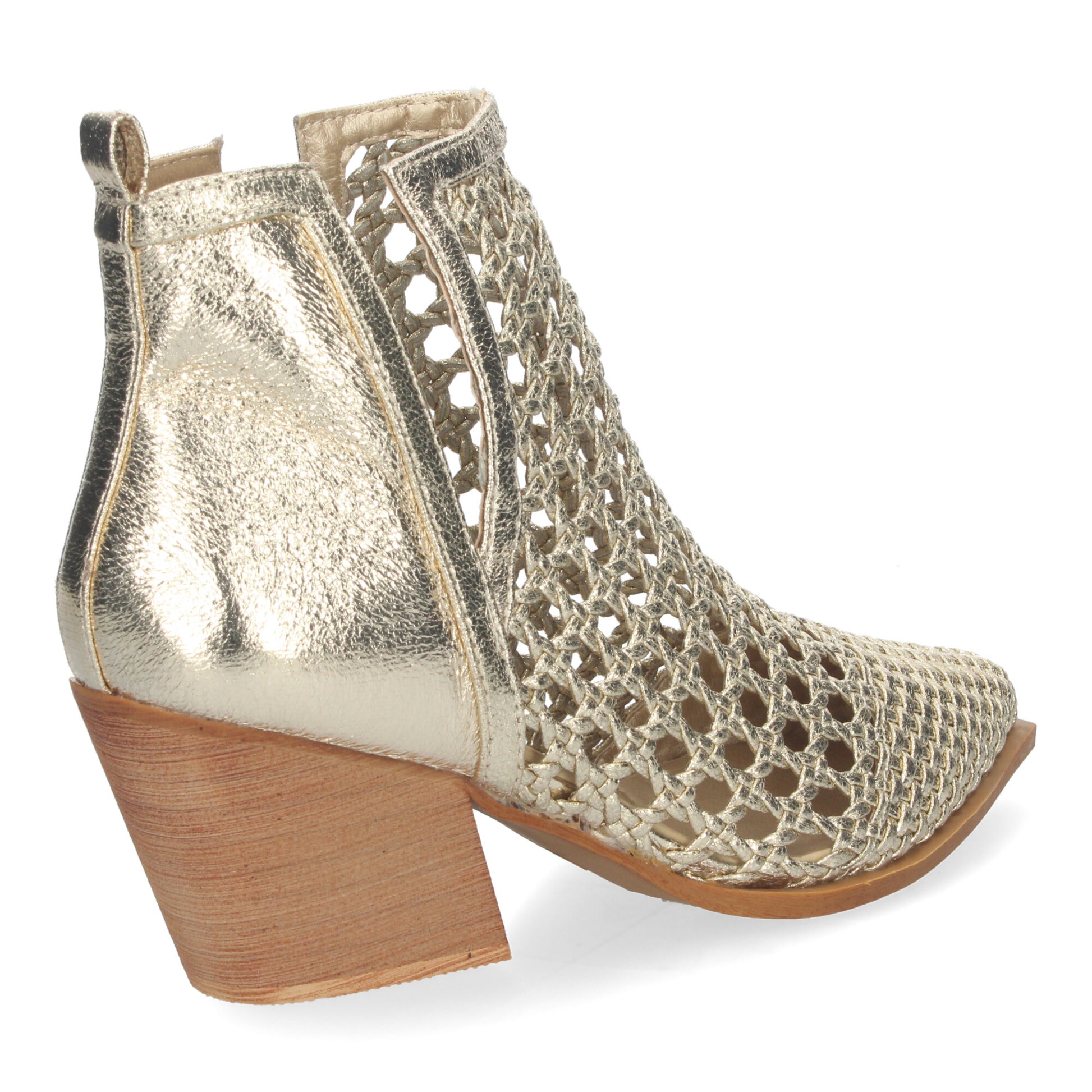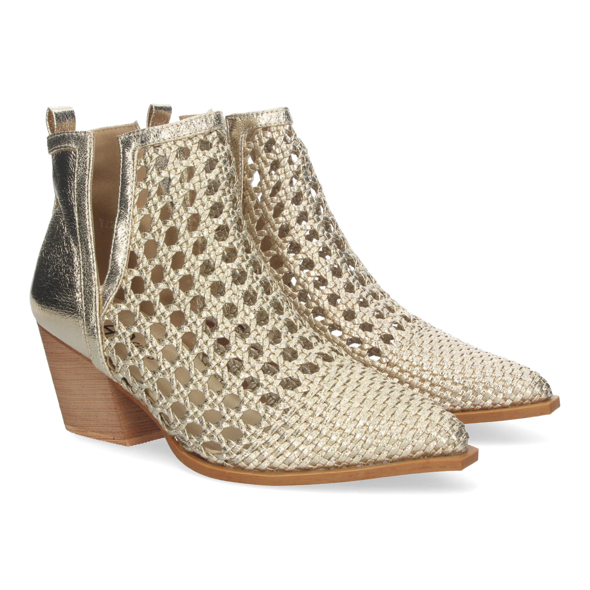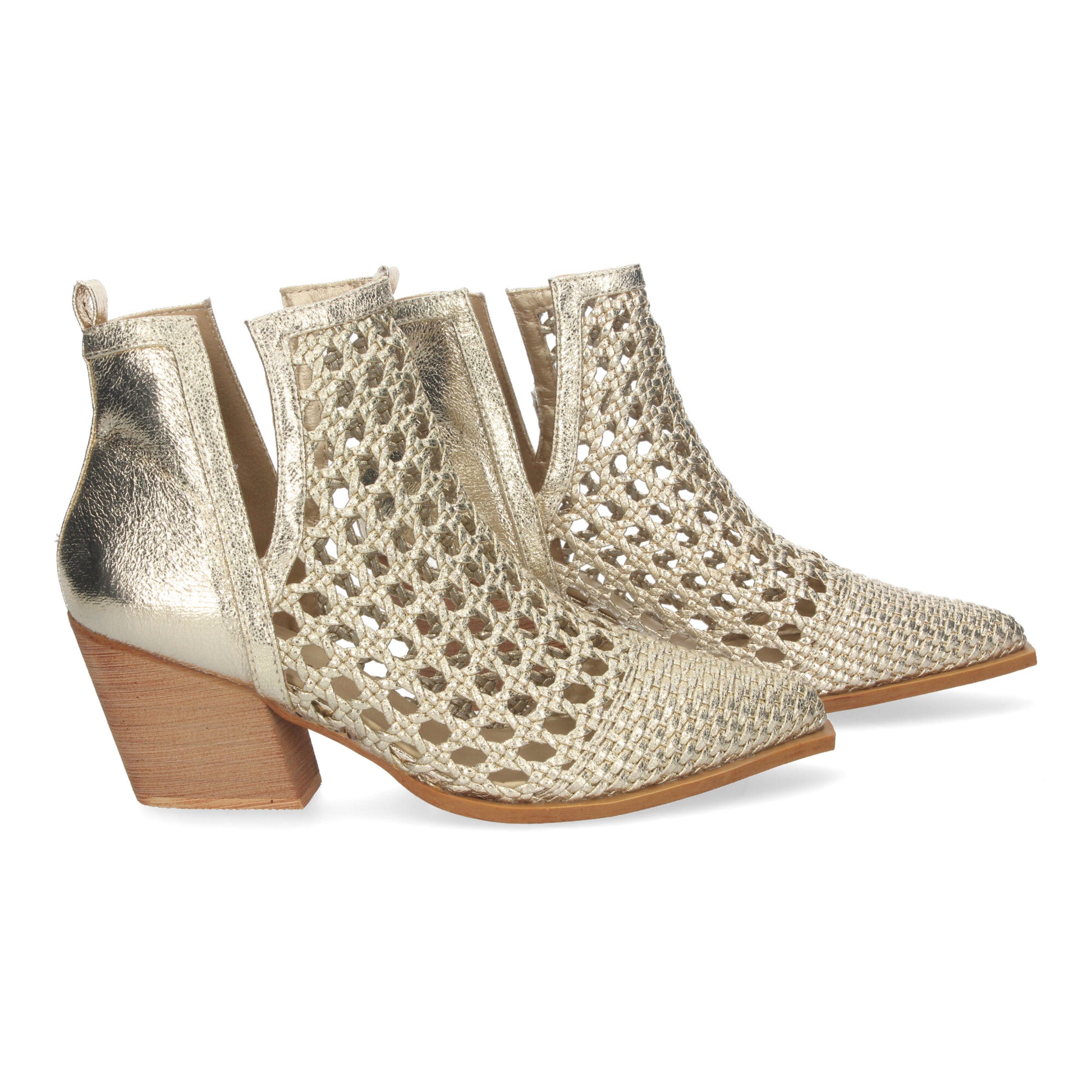 Botín Elegante de Mujer con Tacón Diseño Calado con Tiras Trenzadas de Punta Fina y Abierto por los dos laterales para mas comodidad.