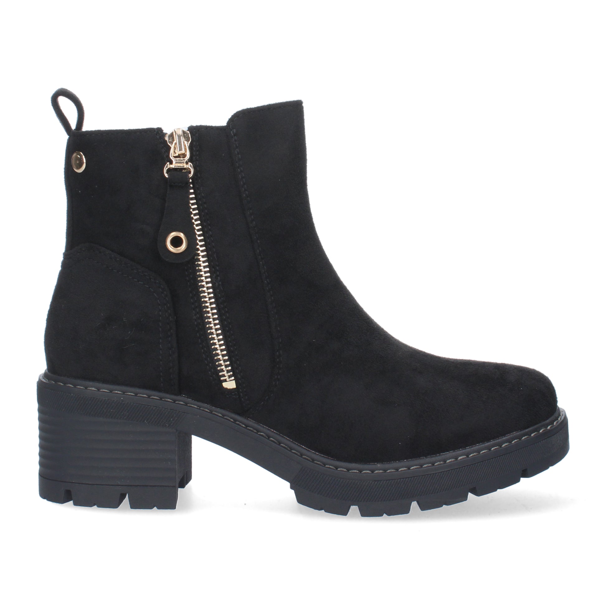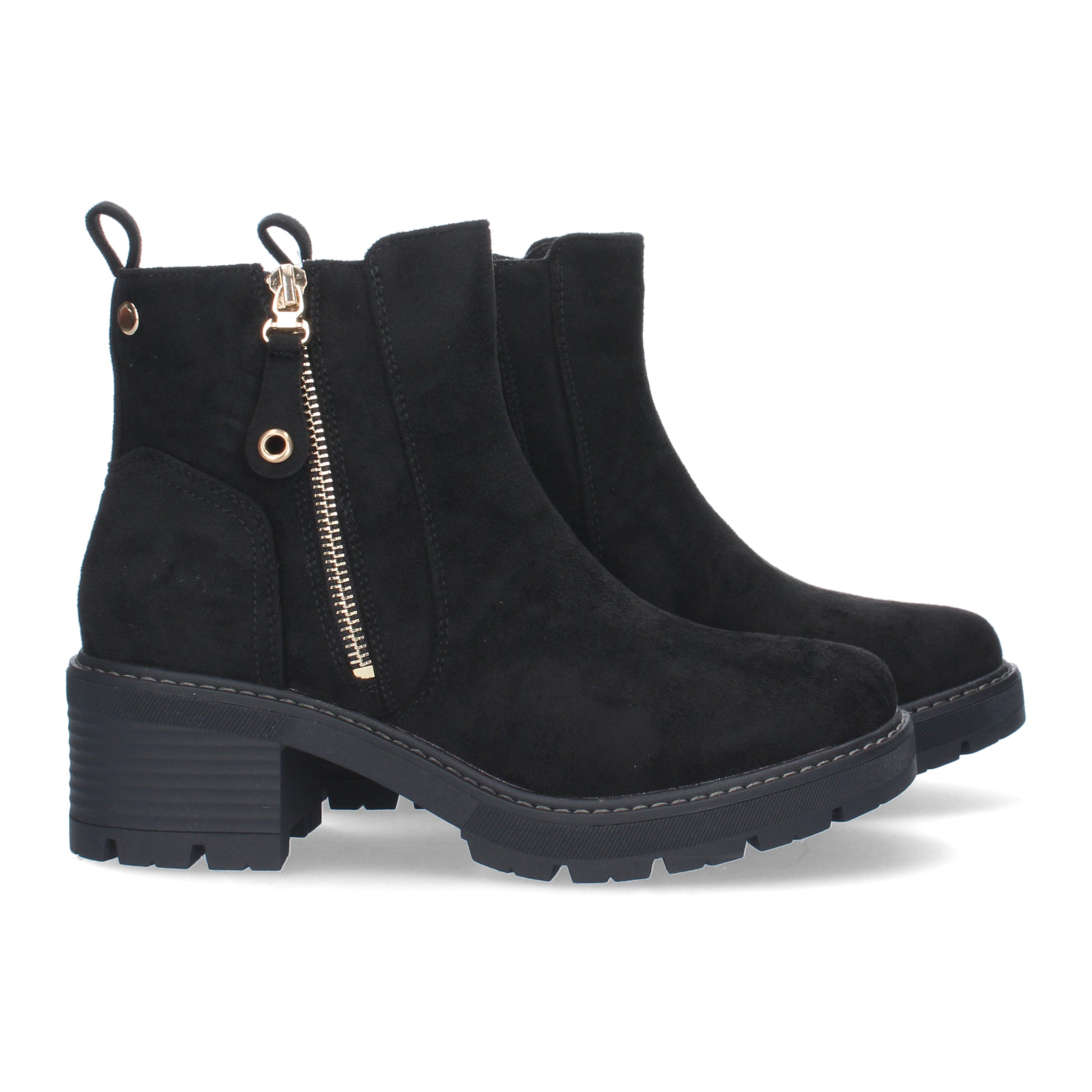 Botín de Tacon para Mujer con material aterciopelado cierre de cremallera y de hebilla.