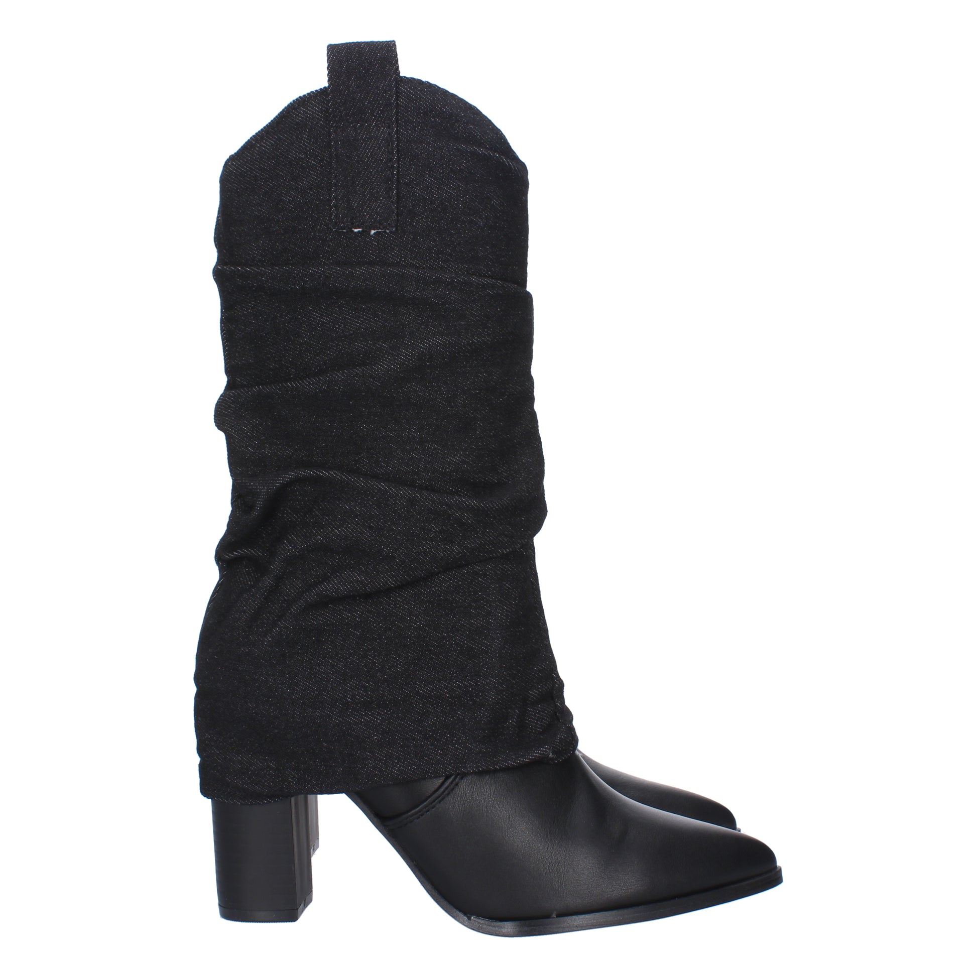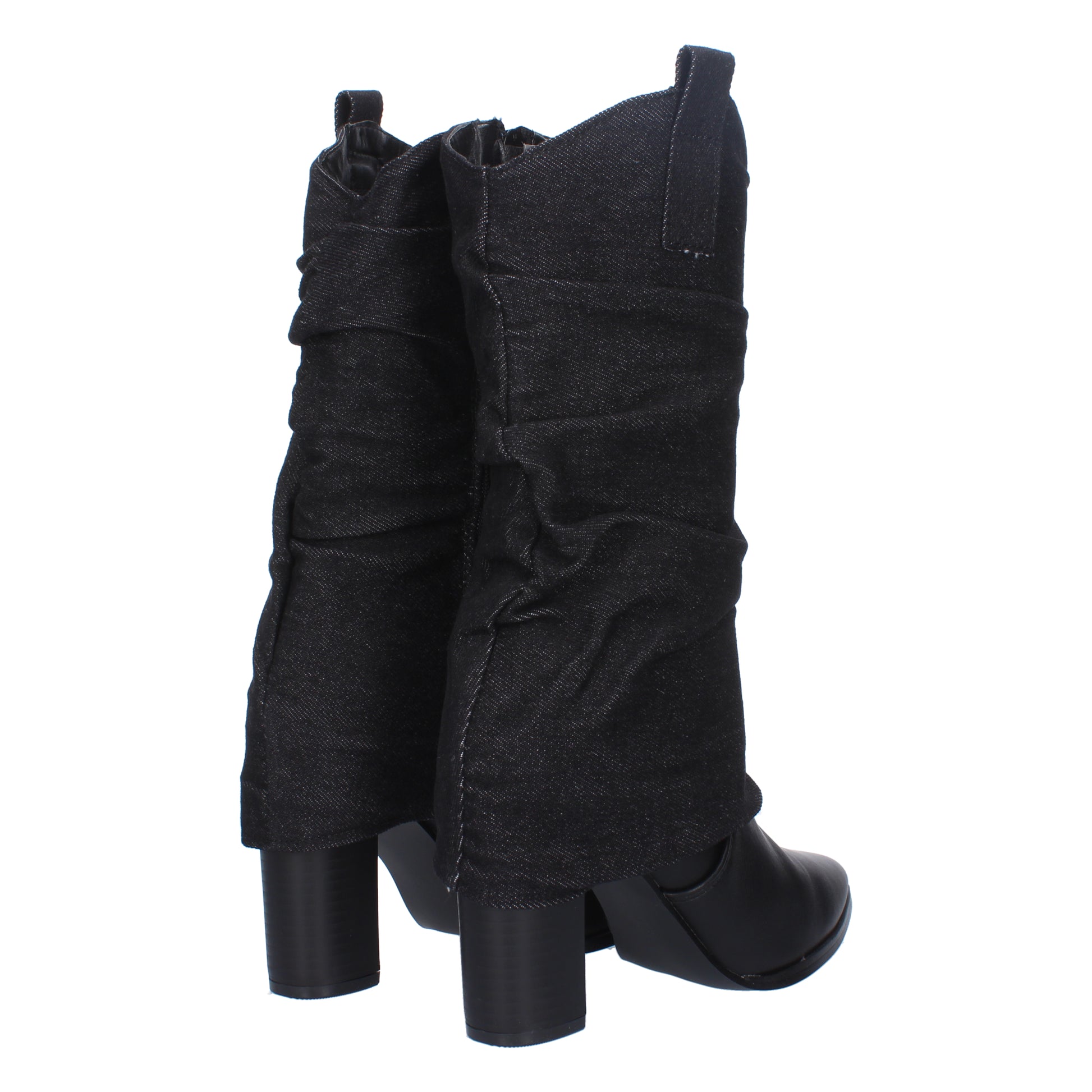 Bota de tacón para mujer punta fina y cierre de cremallera forrada de tela vaquera. Colección otoño invierno 2023