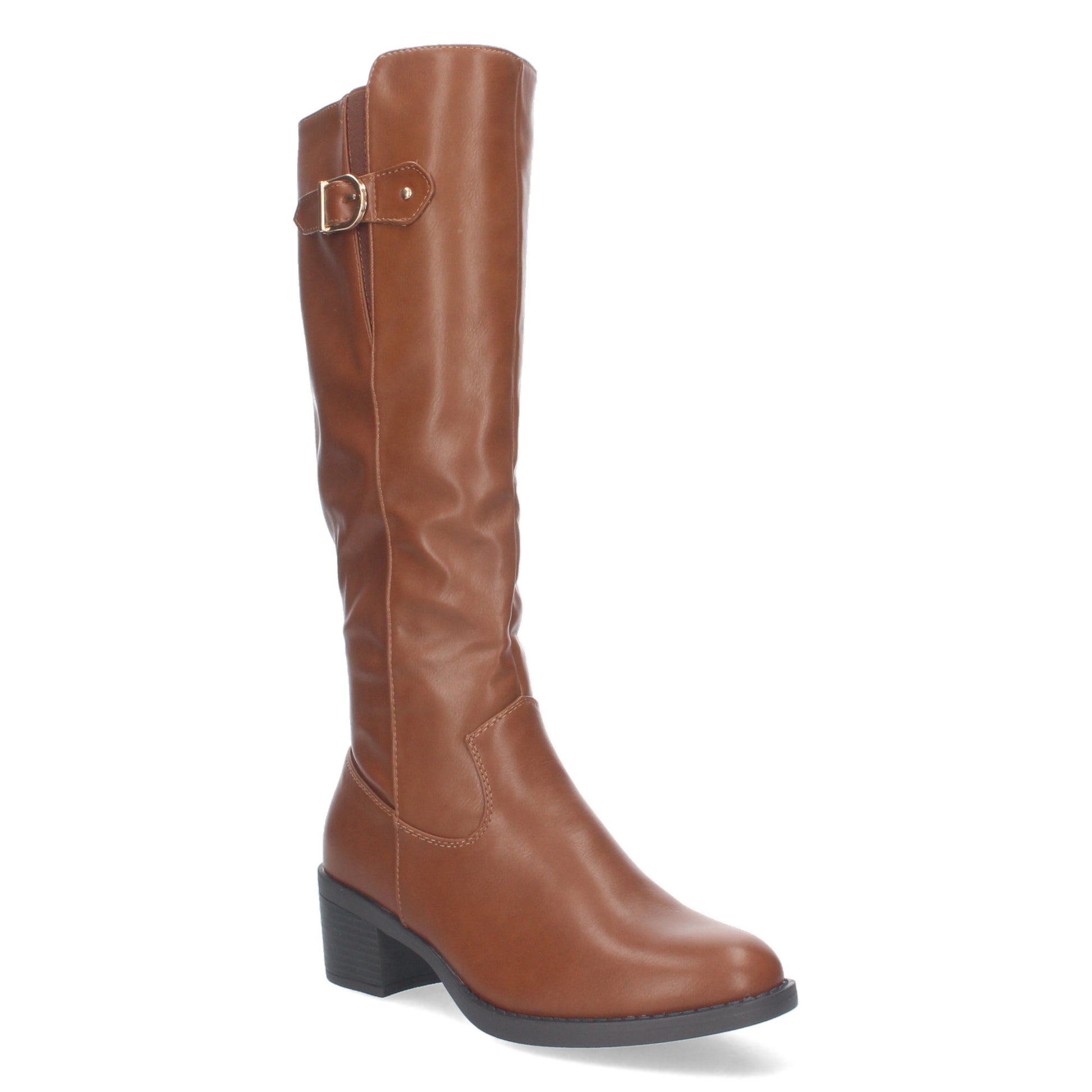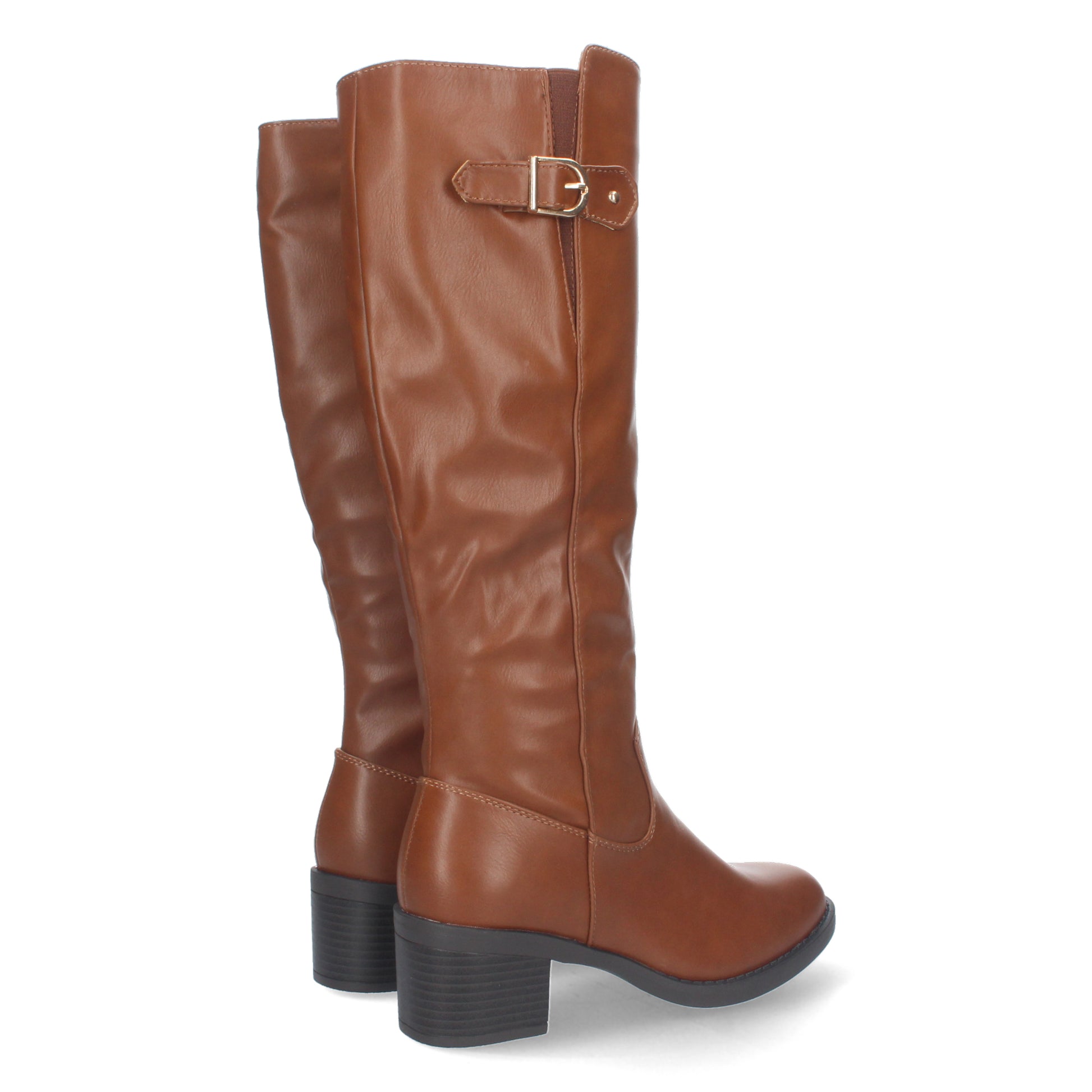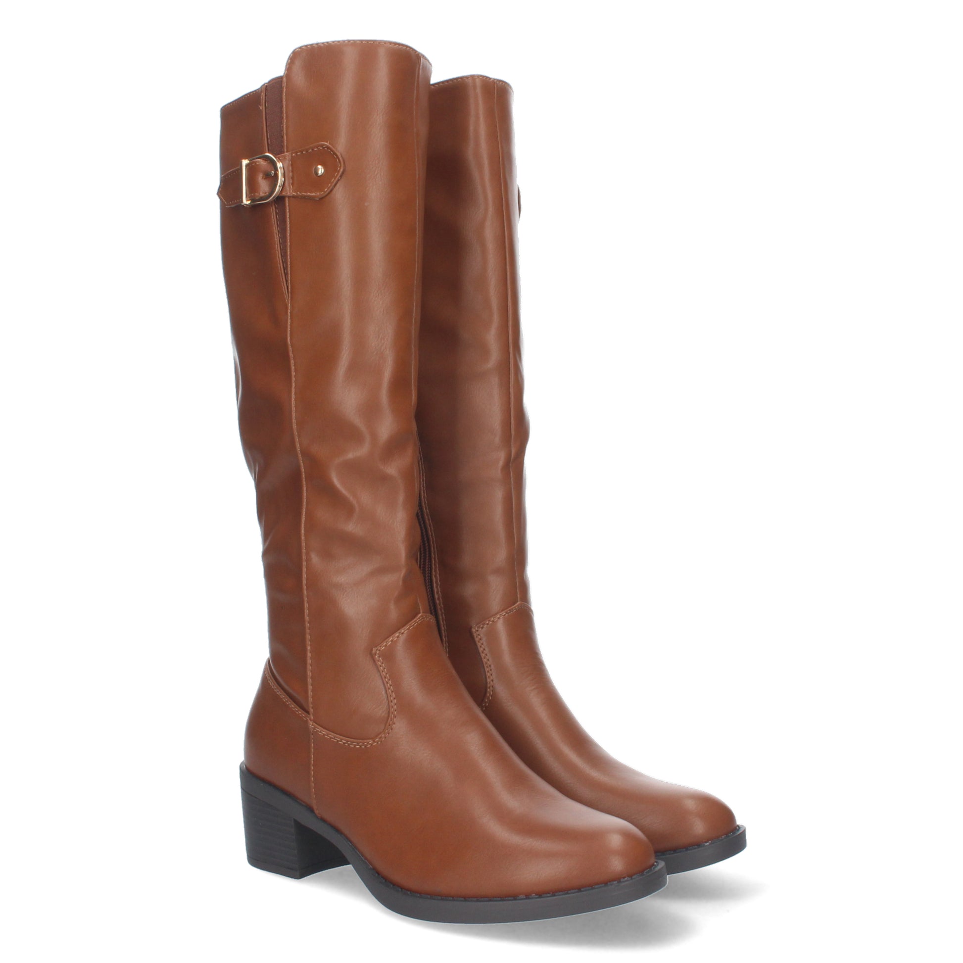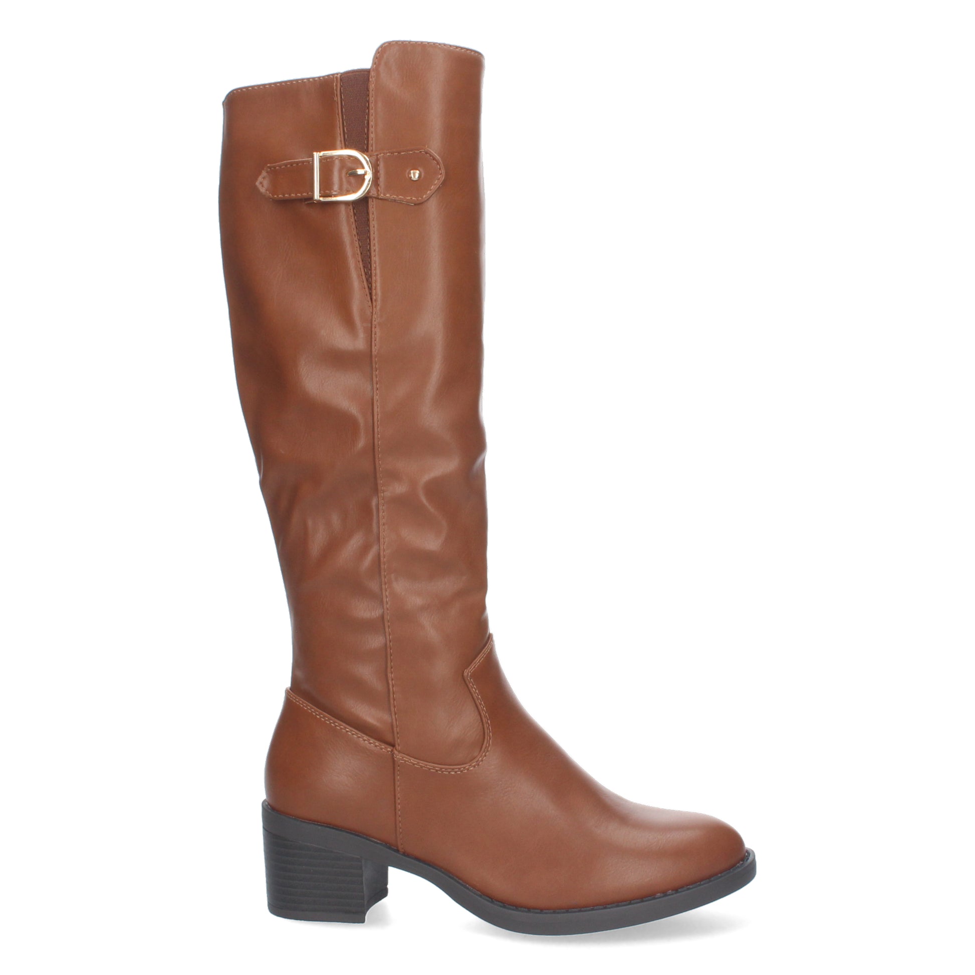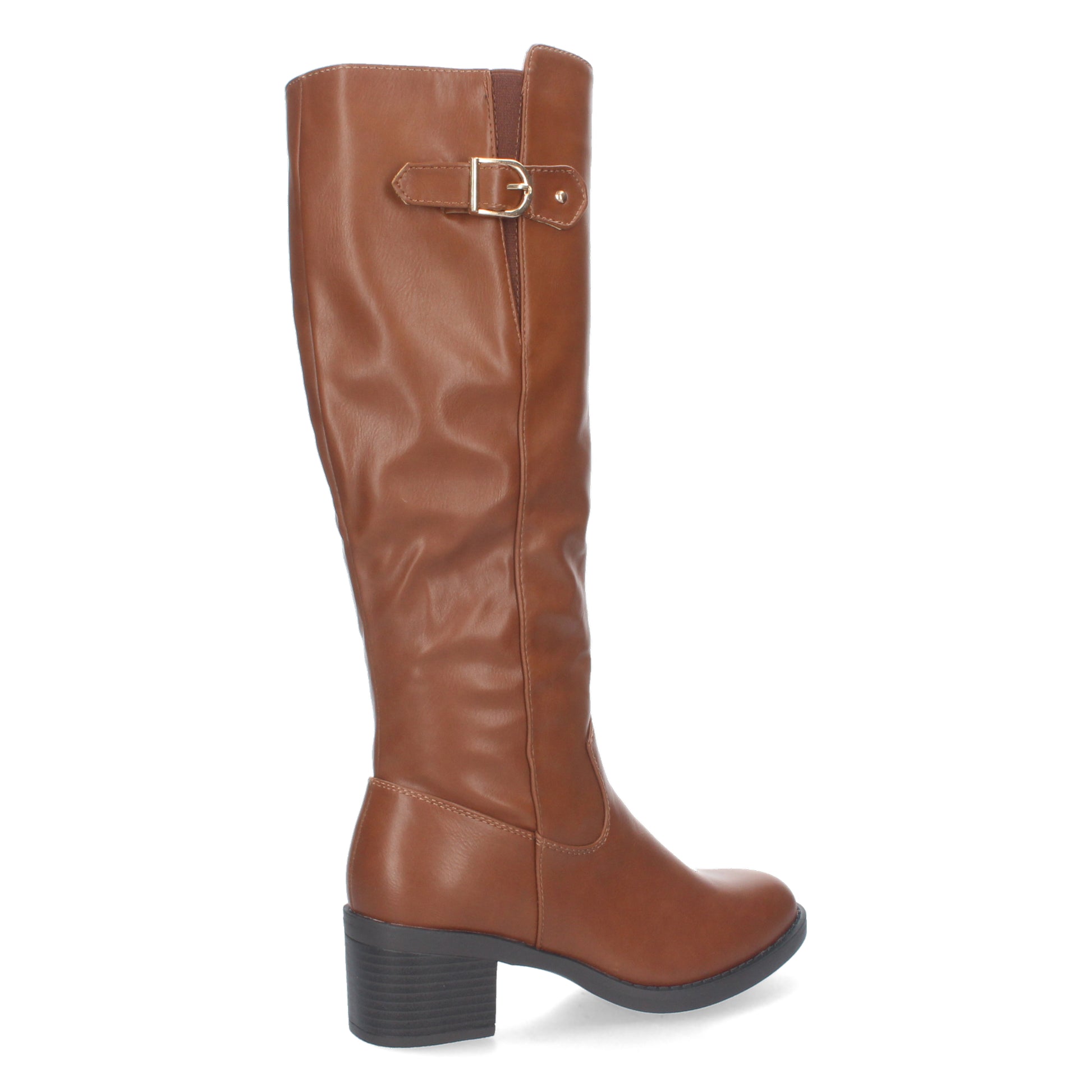 Bota Lisa de Tacón Bajo con Cierre de Cremallera y Adorno de Hebilla en la Parte Superior de la Caña (34'5cm) Cómodas e ideales para Otoño e Invierno