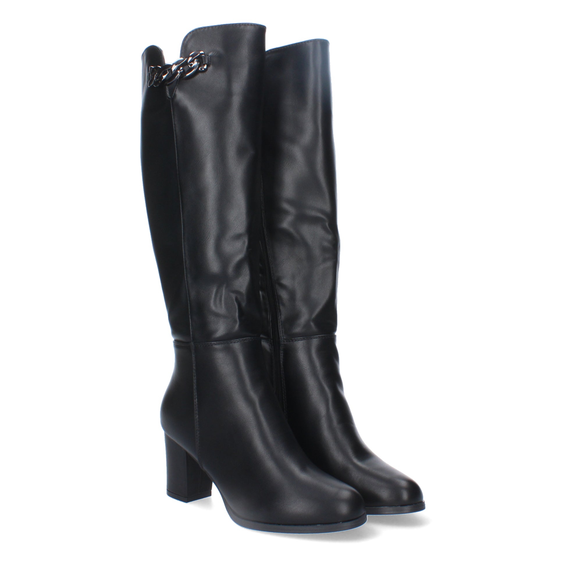 Bota de Tacon Ancho para Mujer punta redonda adorno metalico en caña Cierre de Cremallera Otoño Invierno 2023