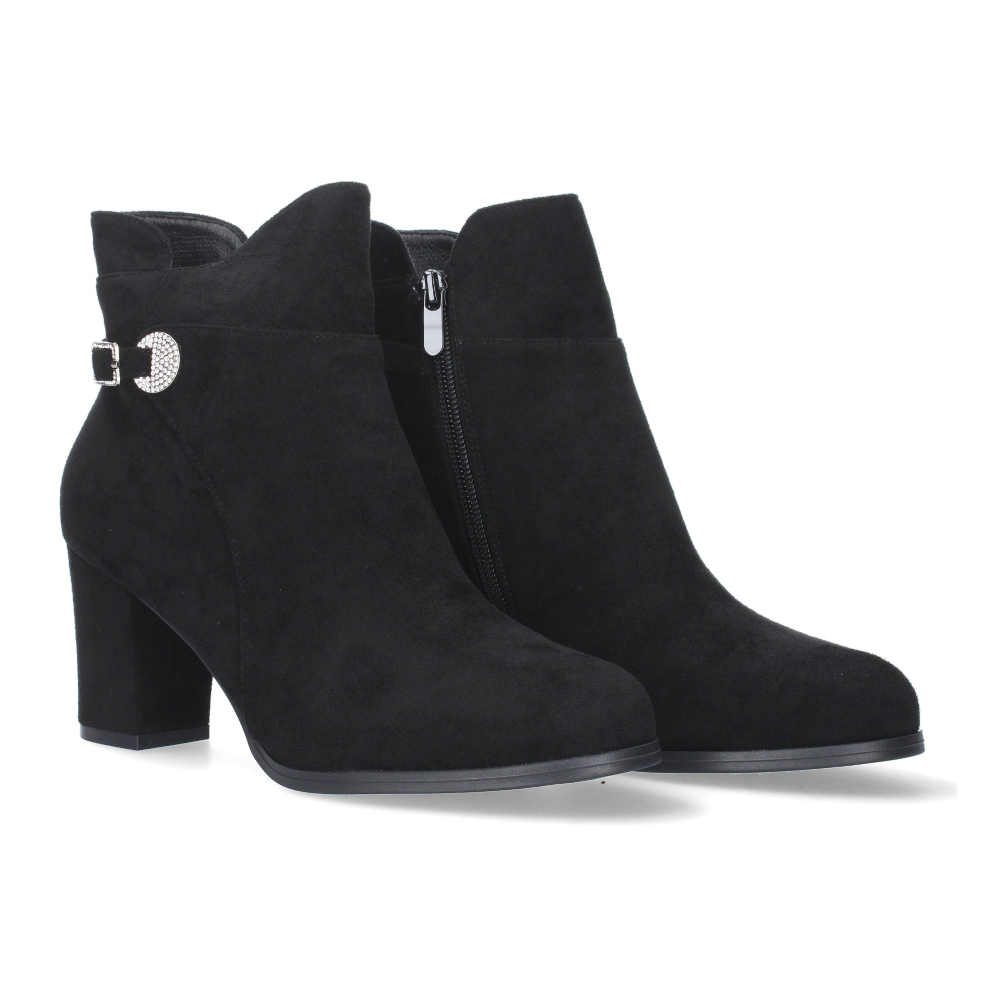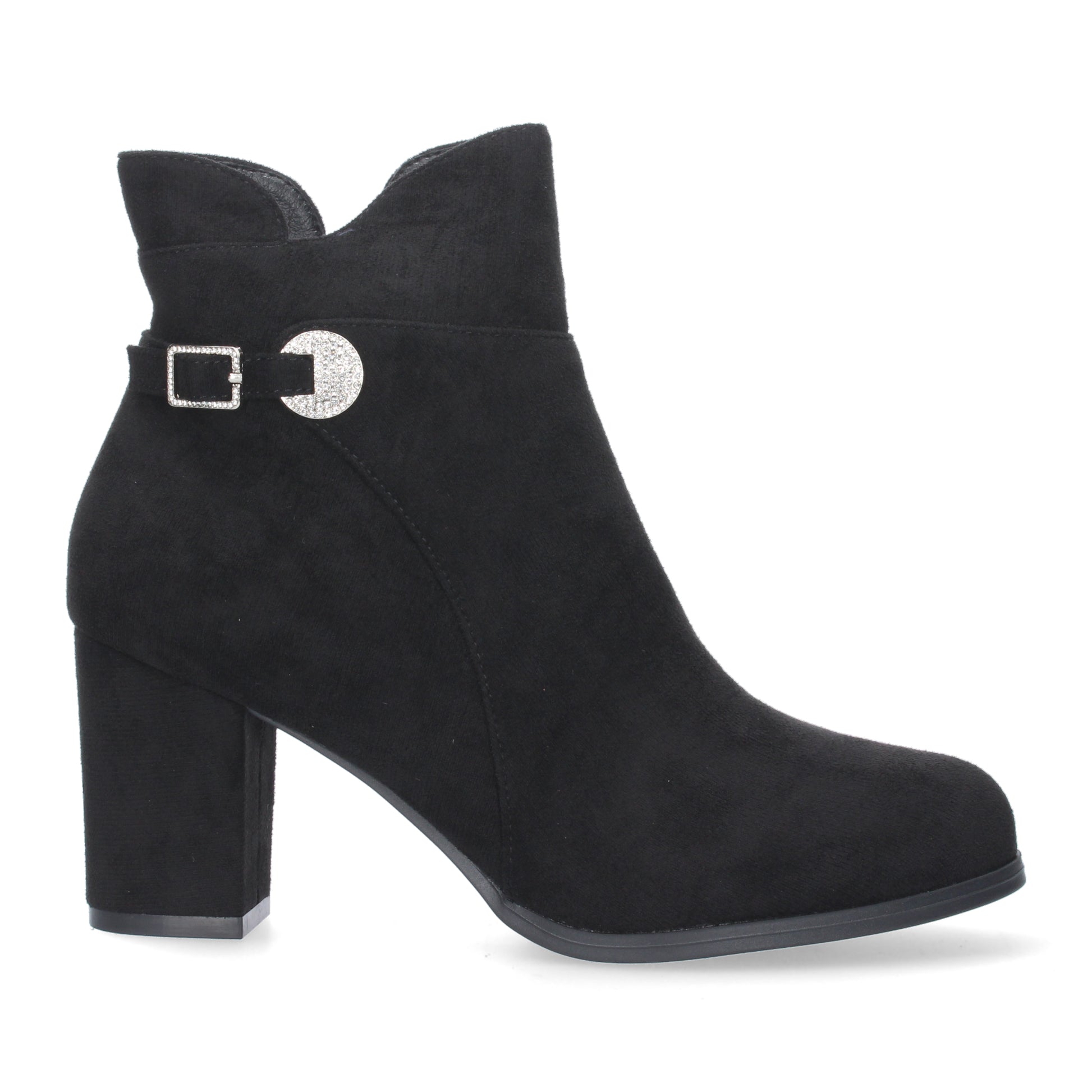 Botin de Tacon Ancho para Mujer punta redonda adorno de tachuela Cierre de Cremallera y de hebilla Otoño Invierno 2023