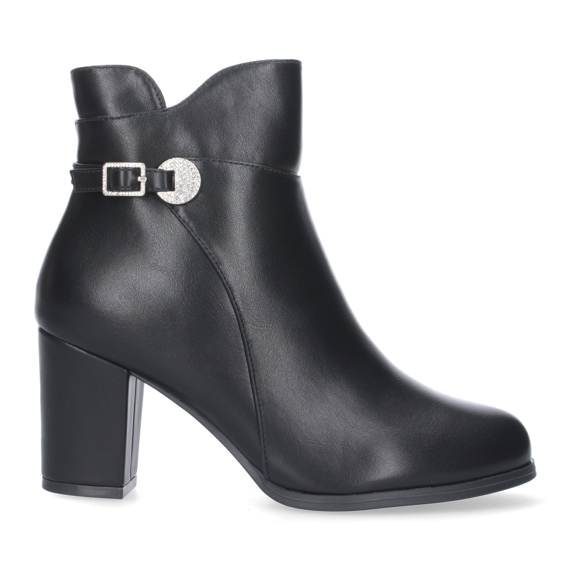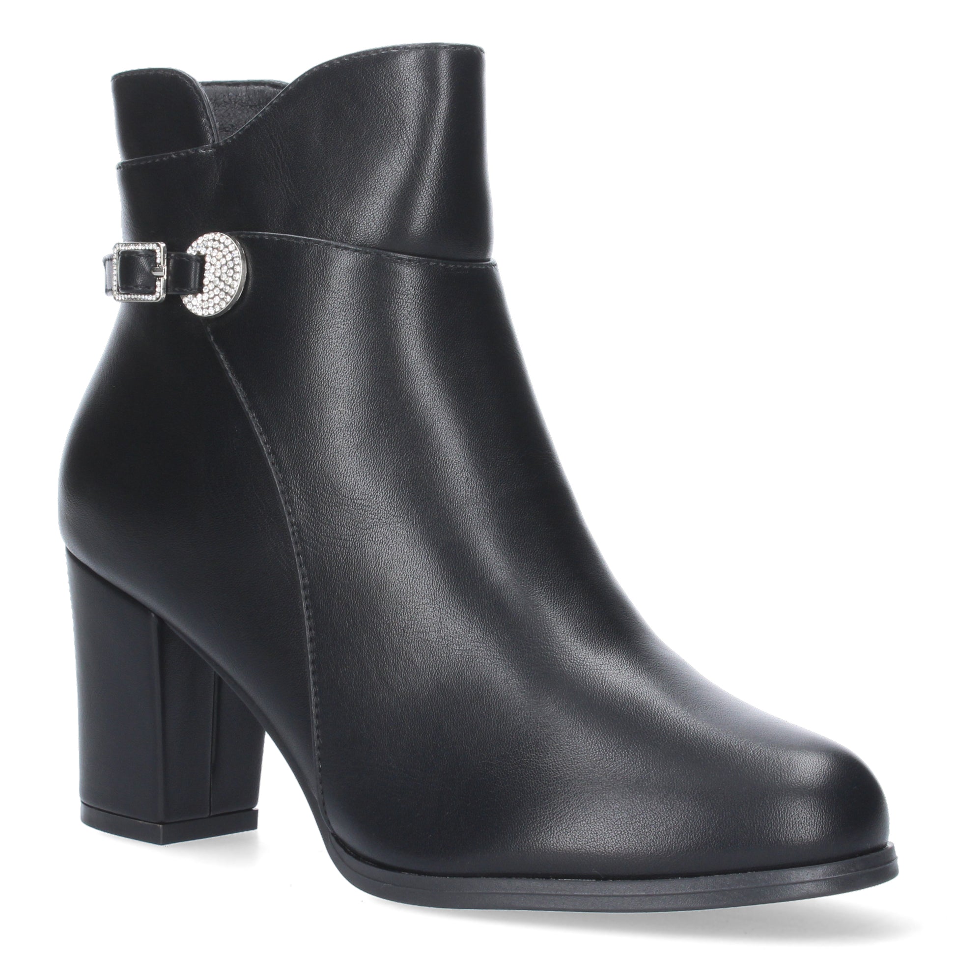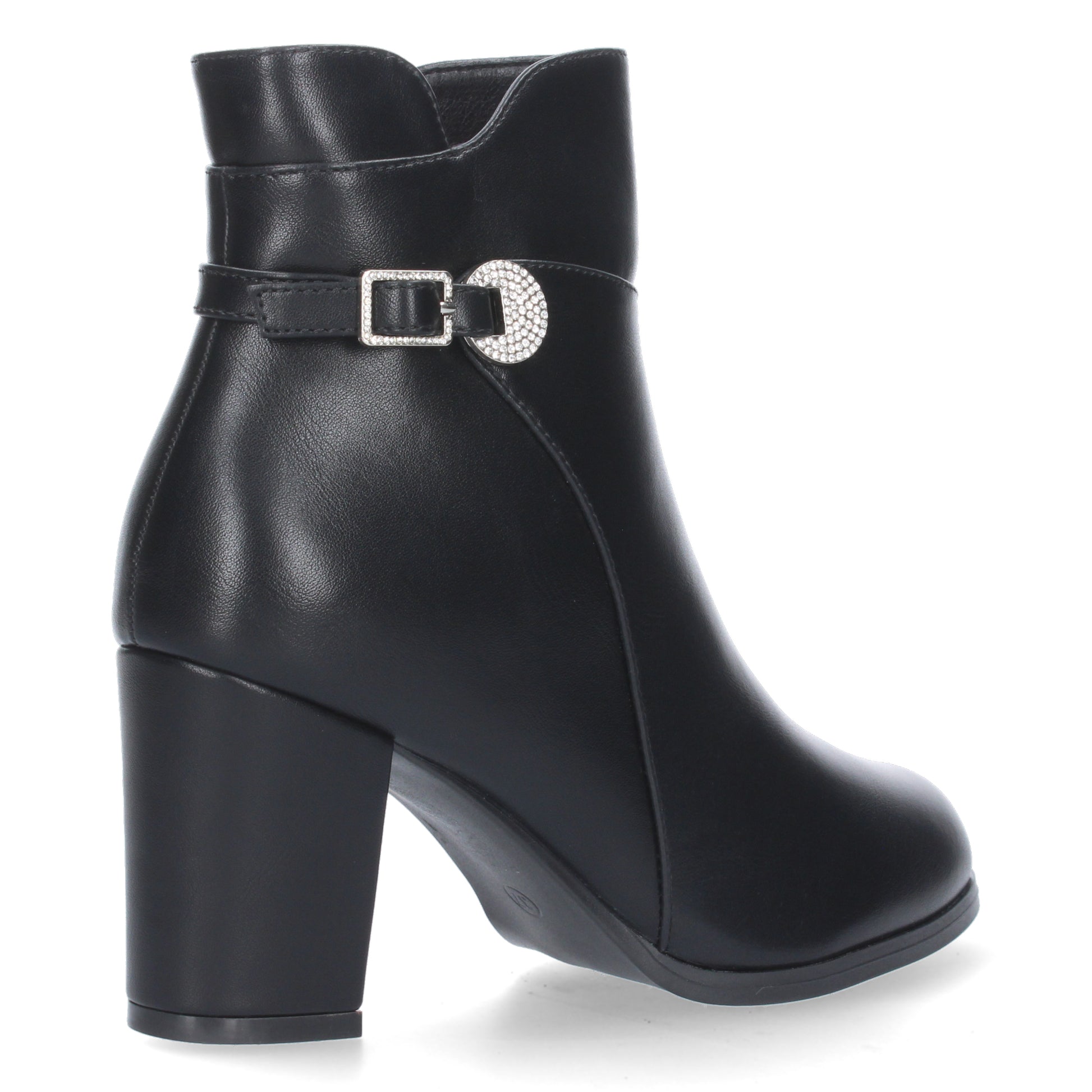 Botin de Tacon Ancho para Mujer punta redonda adorno de tachuela material aterciopelado Cierre de Cremallera y de hebilla Otoño Invierno 2023