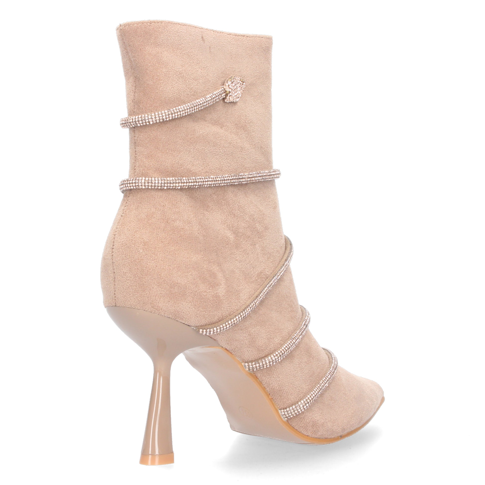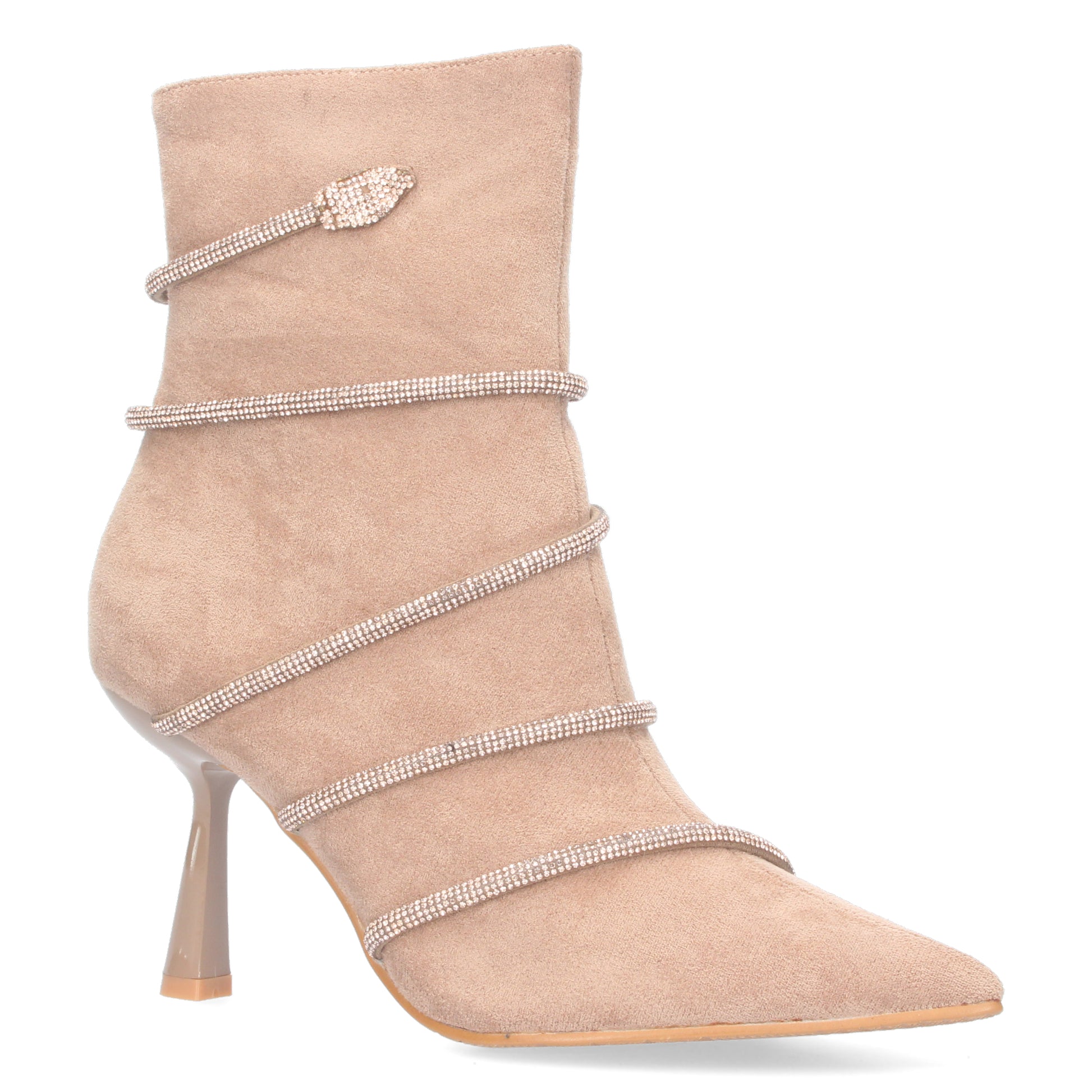 Botin de tacon para mujer material aterciopelado y con adorno metalico con piedra de strass