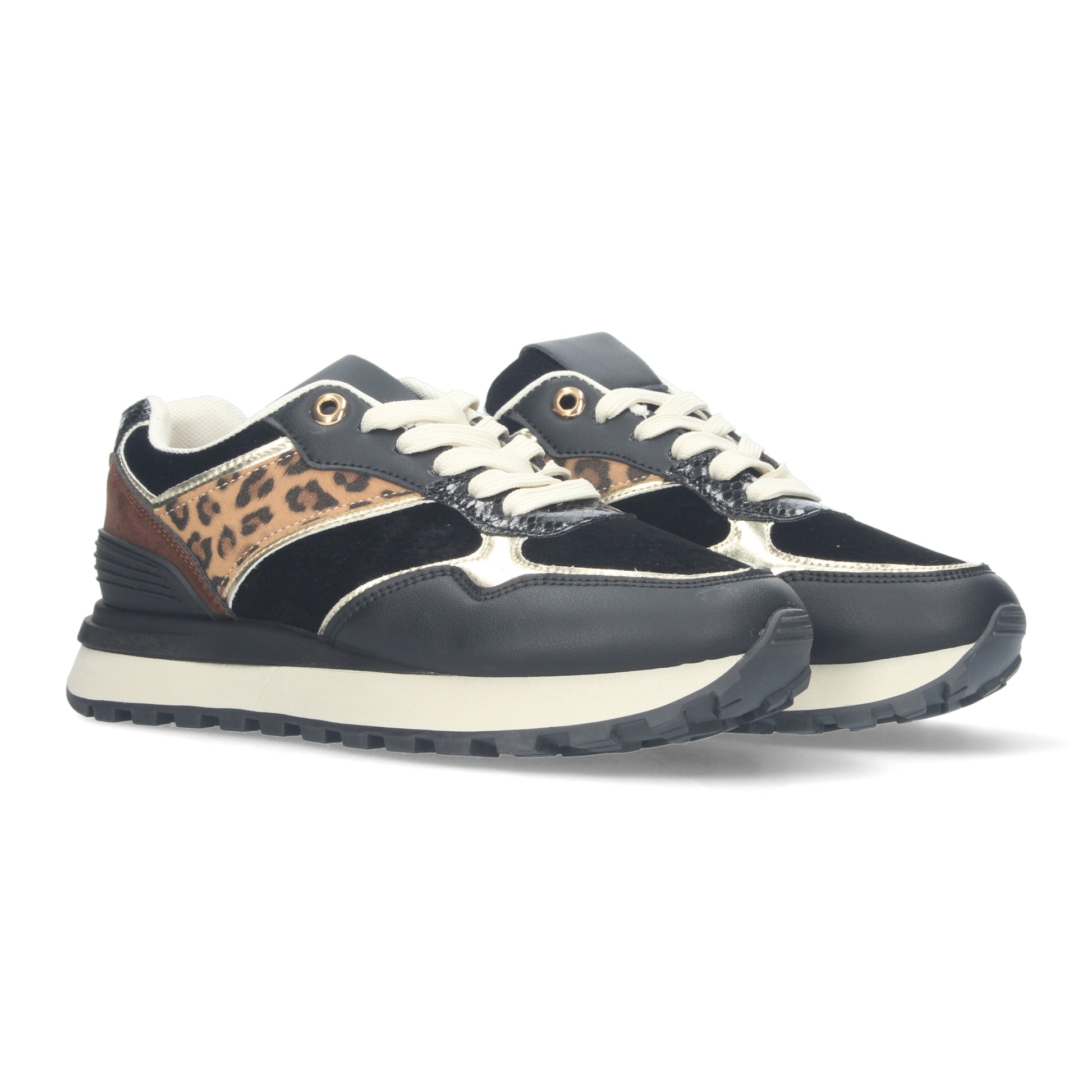 Zapatillas para mujer comodas con estamapado de leopardo y cierre de cordones.